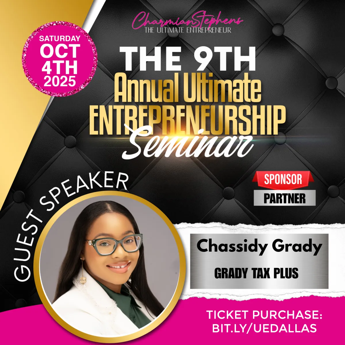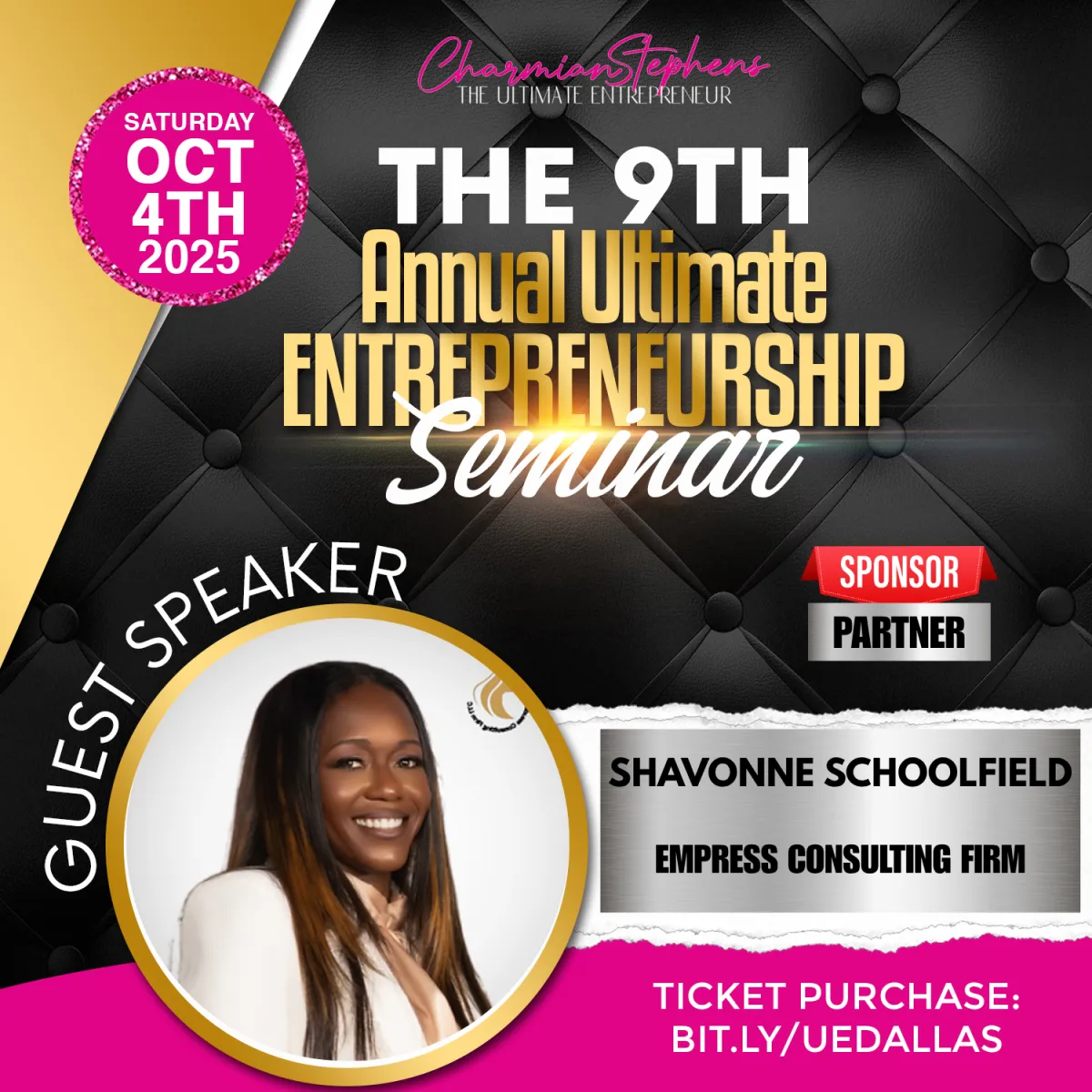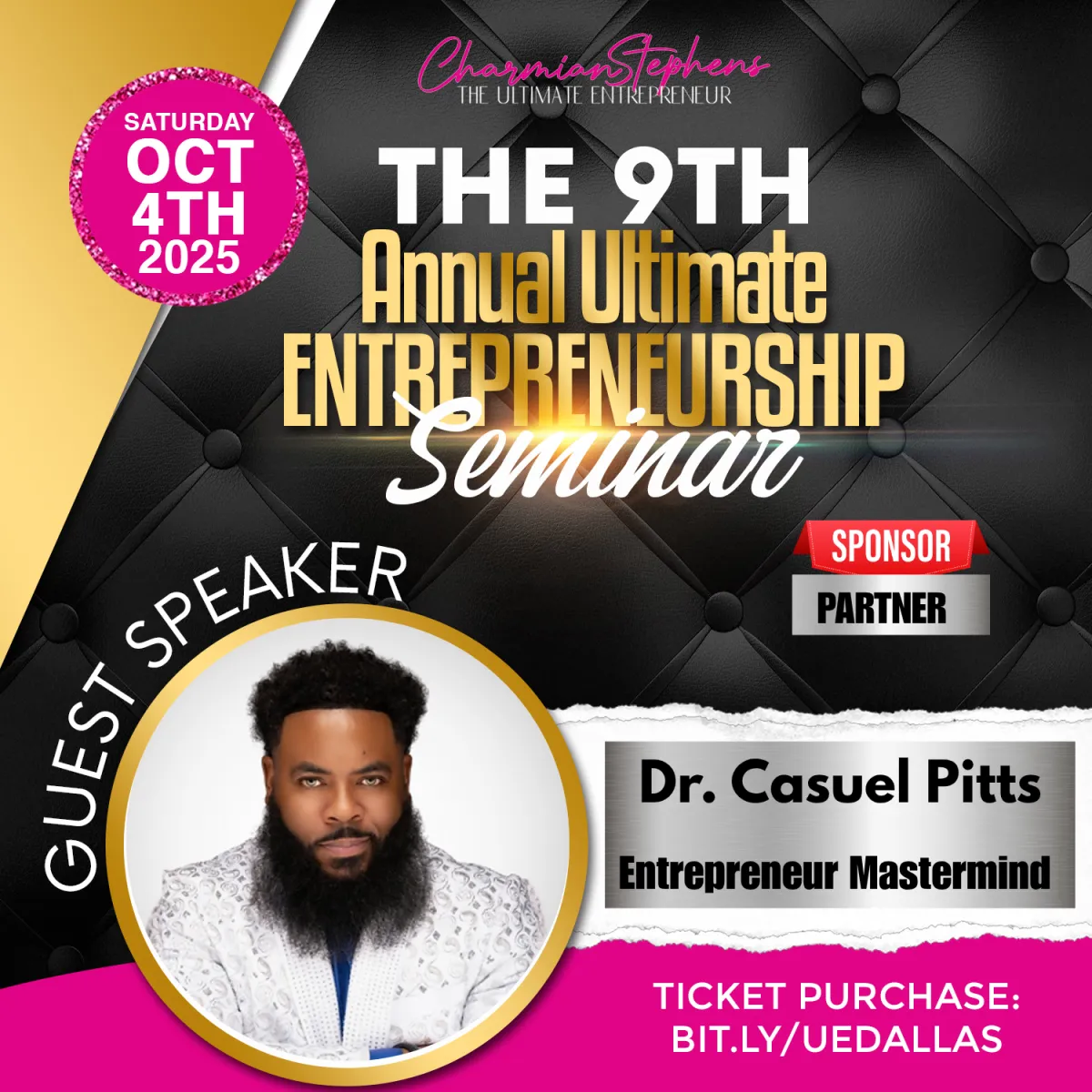 This is your chance to be more than a spectator, you can be a driver of transformation for business owners across the country. Secure your partnership spot today and let’s create history together at the 10th Annual Ultimate Entrepreneurship Seminar.